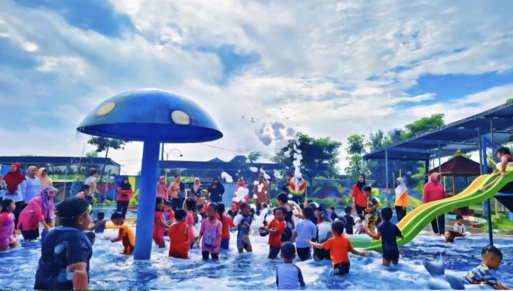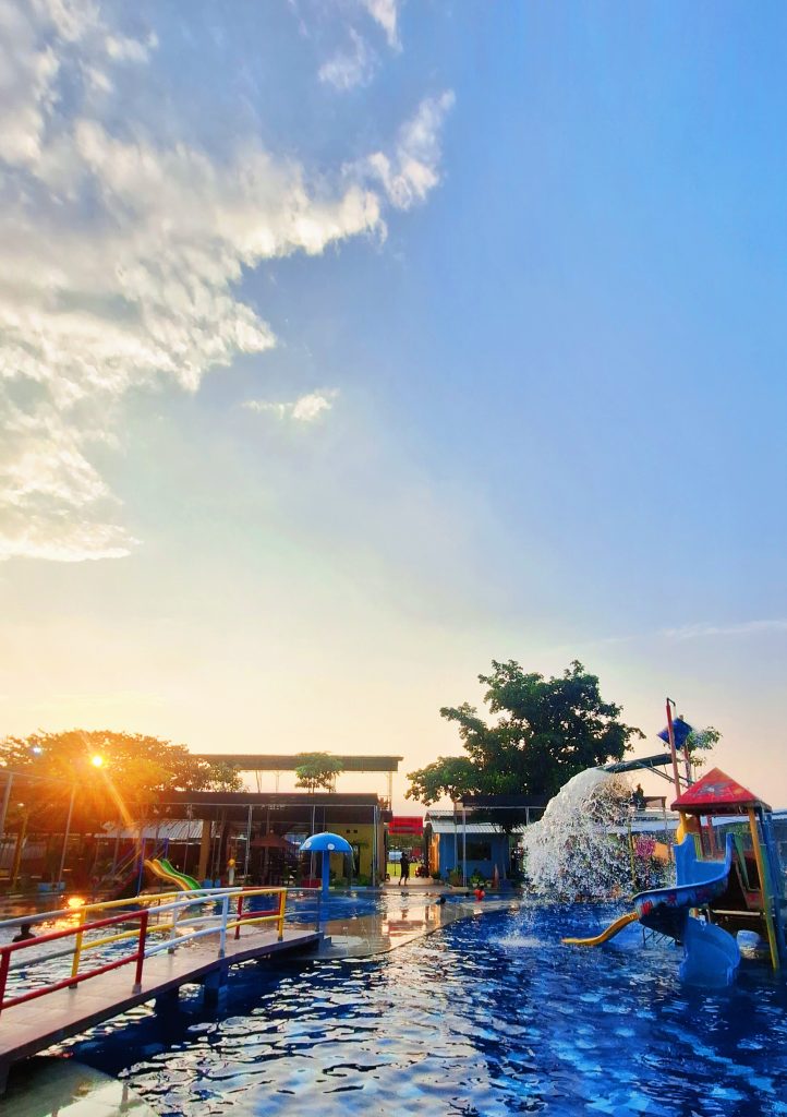 Dengan tampilan warna-warni yang eyecatching memanjakan mata serta tempat yang luas di area Waterboom juga dilengkapi gazebo yang sejuk yang cocok sekali untuk kumpul keluarga juga wahana permainan anak seperti ayunan & jungkat-jungkit.
